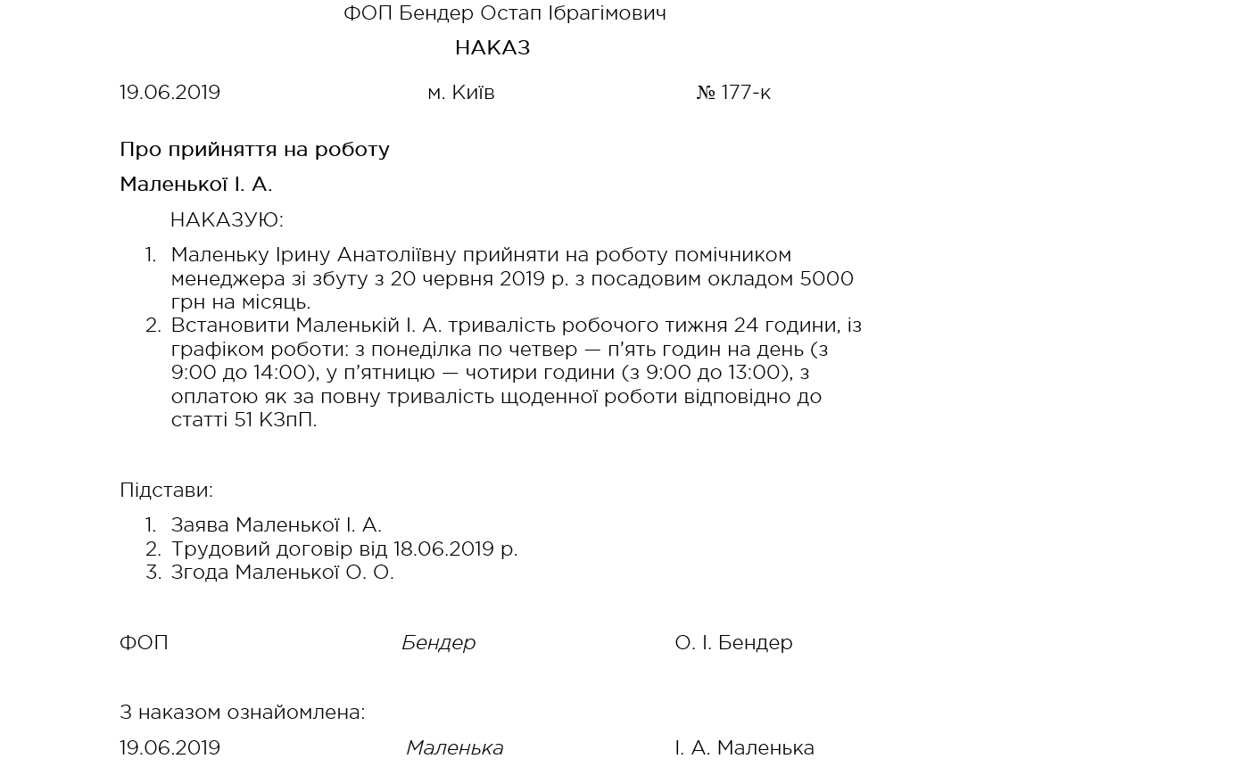 - видаєте наказ про прийняття на работу;